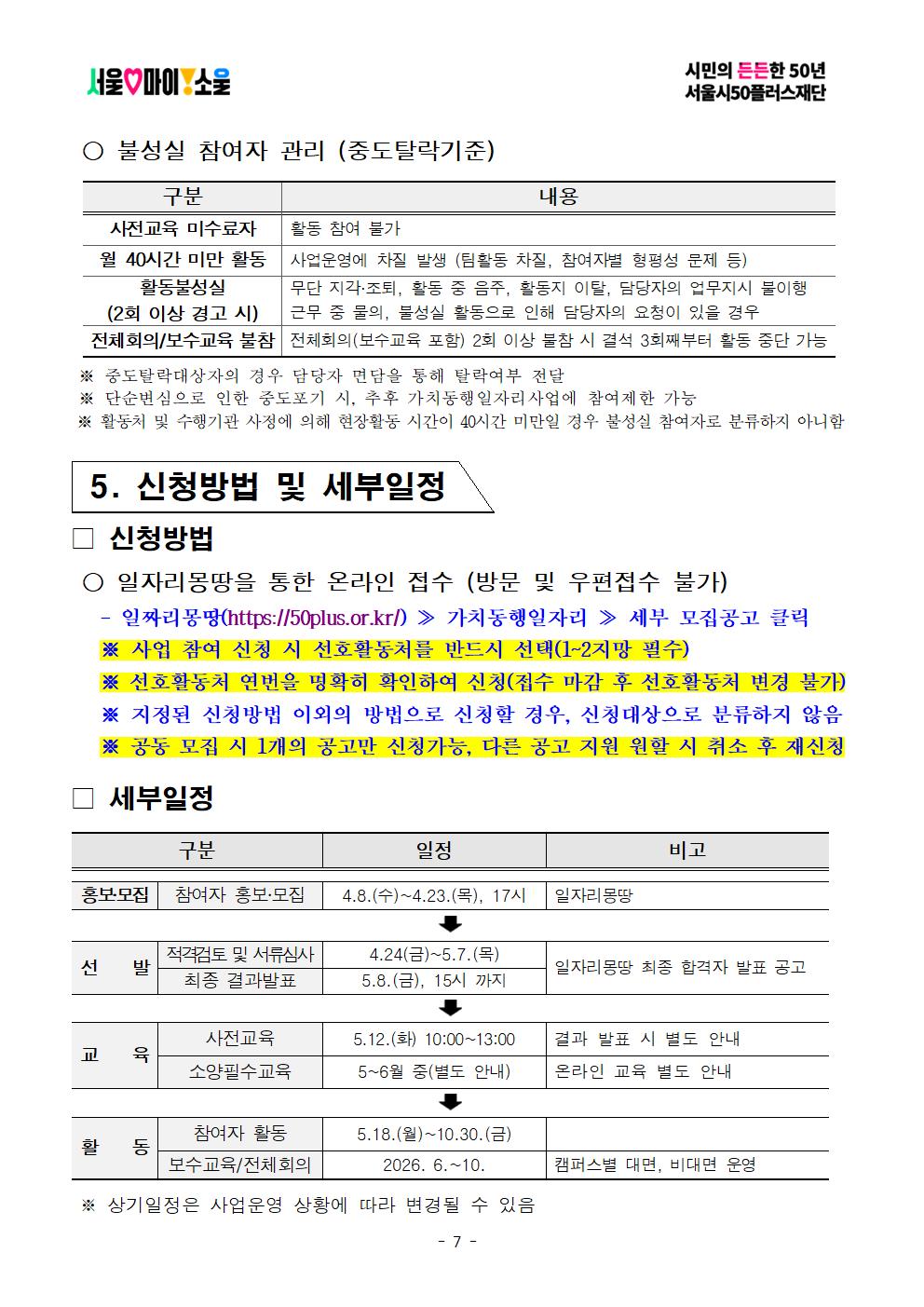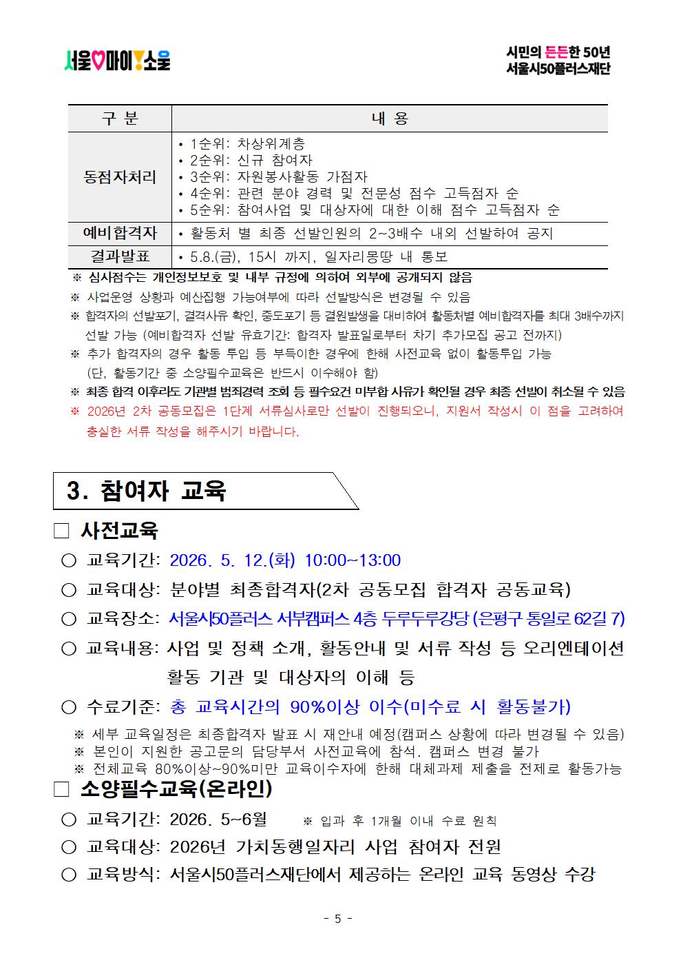 5. 가치동행일자리 기초교육 참여자 모집 링크(한눈에 보기) https://50plus.or.kr/detail.do?id=69315550