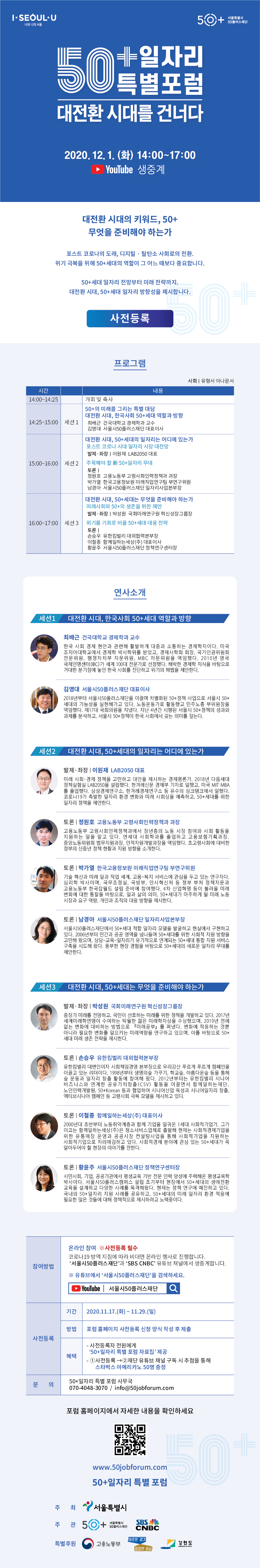 [서울일자리포털] 4050세대 취업교육 이직, 전직 전략 라이브방송 신청자 모집(~9/20, 선착순)