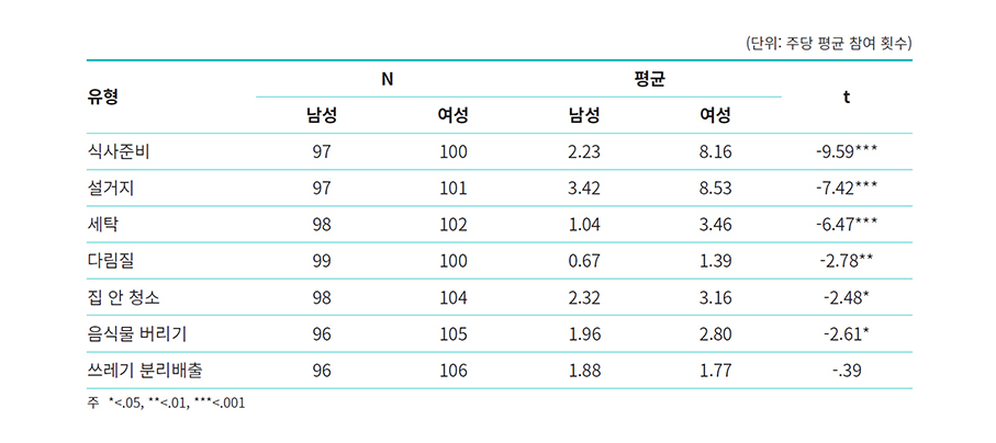 <표 7> 가사노동참여