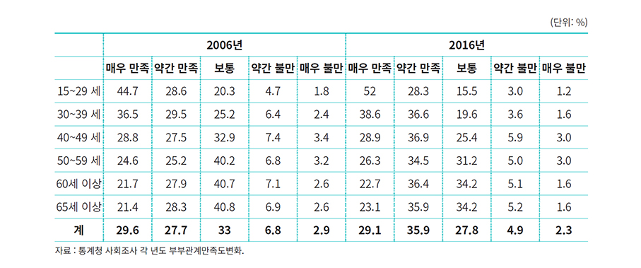 통계청 (2016), <2016 사회조사-부부관계만족도변화>.