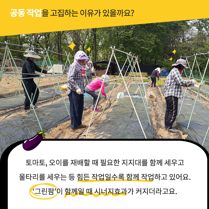 '그린팜'이 함께일 때 시너지효과가 커지더라고요. 텃밭지식을 공유하는 것은 물론, 마음을 나누는 활동을 하고 있답니다.