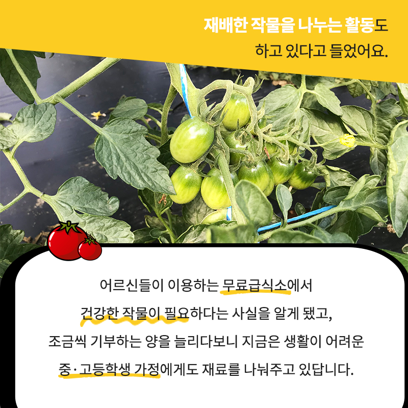 그러다 어르신들이 이용하는 무료급식소에서 건강한 작물이 필요하다는 사실을 알게 됐고,