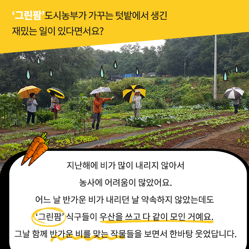 Q. ‘그린팜’ 도시농부가 가꾸는 텃밭에서 생긴 재밌는 일이 있다면서요?