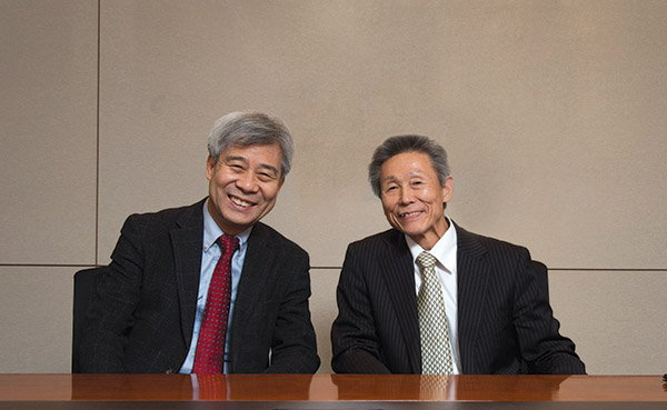 ▲ 트러스톤연금교육포럼의 강창희 대표와 사와카미투자신탁의 사와카미 아쓰토(澤上篤人) 회장.