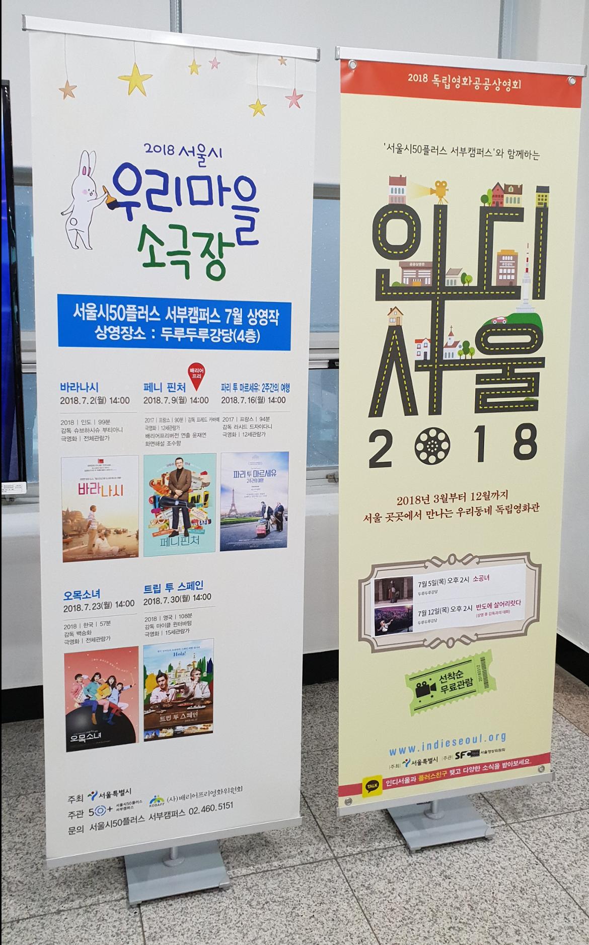 서울시50플러스 서부캠퍼스에서 상영하는 7월의 영화가 풍성하다. 자그마치 7편. 최신작으로 생각거리를 듬뿍 안은 인디영화들을 무료로 보여주는 이 프로그램 덕분에 그동안 좋은 영화를 감상하는 기회를 얻어왔다. 4층 두루두루 강당은 제법 큰 스크린과 성능 좋은 스피커 시설을 갖추고 있다. 다만, 계단식 강당이 아니다보니 앞자리 사람의 머리에 화면이 가려지는 불편함이 있기는 하다. 그래서 나는 맨 앞자리를 고집하기 위해 일찌감치 도착하는 편이다. 오늘은 성인용 애니메이션 '반도에 살어리랏다'를 상영하는 날. 영화를 보고 나면 감독과의 대화시간도 있다니 더욱 기대가 크다.