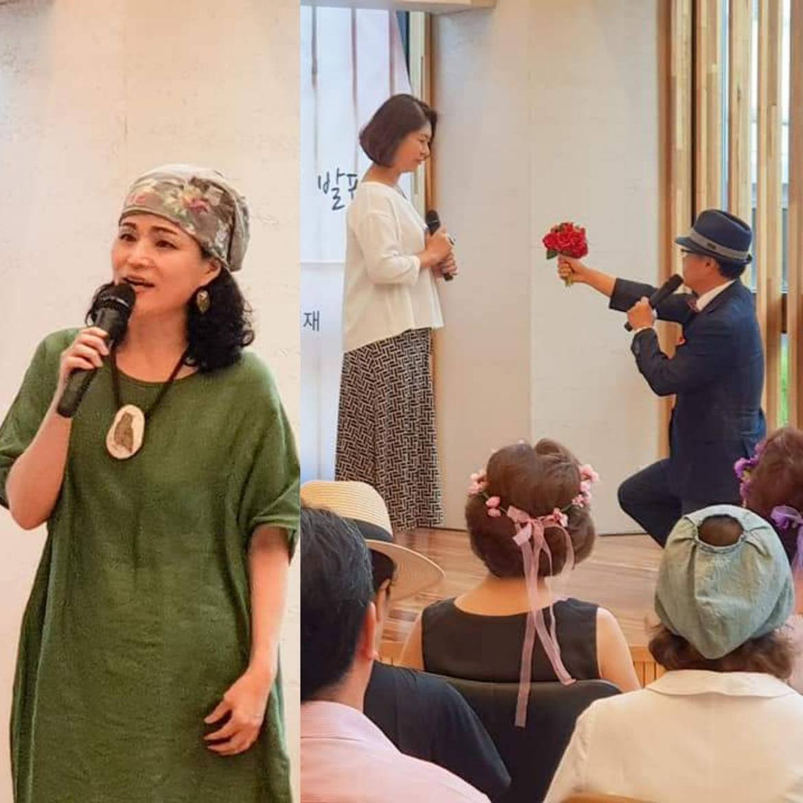 그 옛날 여학생들로부터 애송되던 노천명 님의 '이름없는 여인이 되어'와 조병화 님의 '늘 혹은'이 낭송되고 김현태 님의 '인연이라는 것에 대하여'가 수강생 퍼포먼스와 함께 합송되었다. 이어서 시 낭송 대상 제조기라는 별명을 가진 시인이자, 시 낭송가인 이혜정 강사가 마종기 님의 '우화의 강'을 낭송할 때는 모두가 숨죽여 전문가의 낭송을 음미하기도 했다.