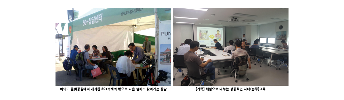 4년 차에 접어든 50+상담센터도 좀 더 체계적이고 전문적인 상담으로부터 교육, 커뮤니티, 사회공헌활동 및 다양한 활동 연계로 이어질 수 있도록 서울시50플러스재단 상담센터의 50+맞춤형 상담콘텐츠 개발·제공과 온·오프라인 시스템 구축, 50+컨설턴트의 전문성 강화에 따른 원스톱 상담서비스의 만족도 제고가 필요한 시점이다. 50+세대들과 그 부모들의 돌봄, 가족통합(가족구성원, 세대 간 소통, 공감)을 위해 서울시50플러스캠퍼스와 50+상담센터가 함께 고민하고 대안을 나누고 싶다.