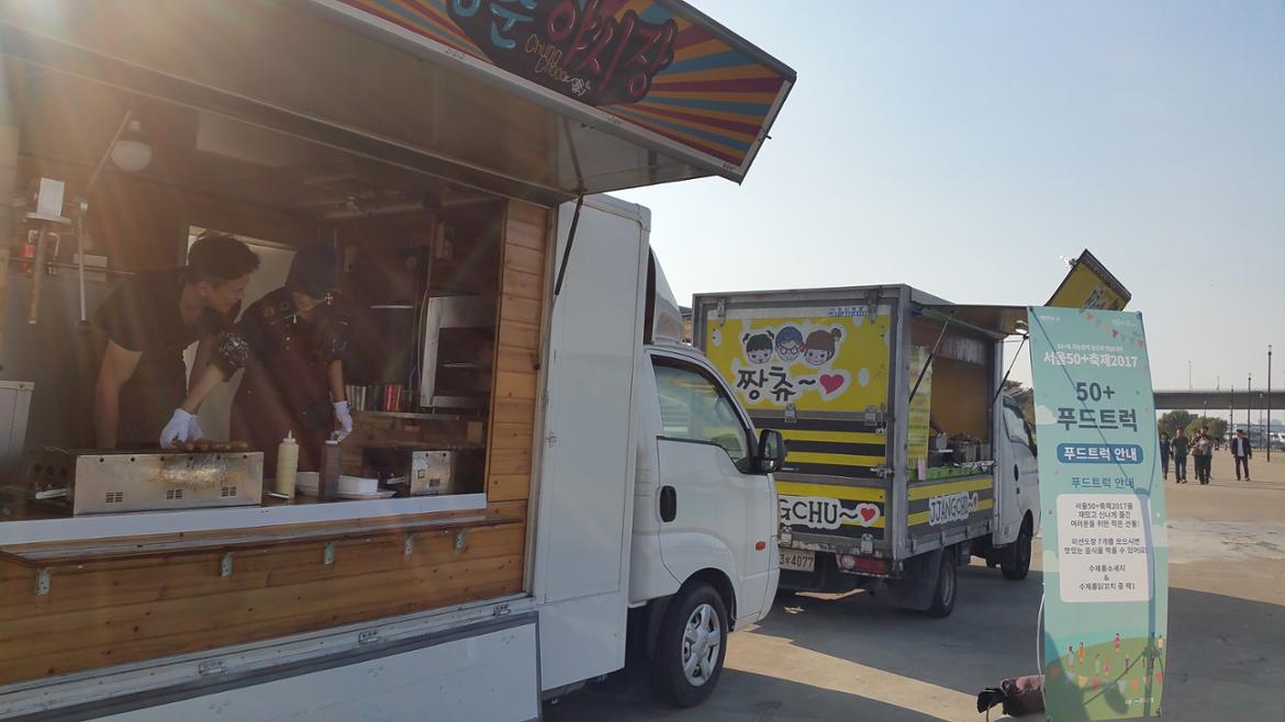 부스를 돌면서 스탬프를 7개 찍어오면 푸드 트럭에서 ‘수제 롱소세지’나 ‘수제 통닭꼬치’ 중 하나를 무료로 먹을 수 있기 때문이다.