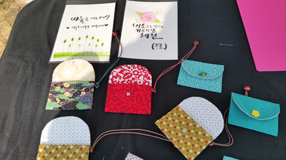 ‘바늘로 여는 세상’ 부스에 오면 직접 카드지갑을 만들어 가지고 갈 수 있다.