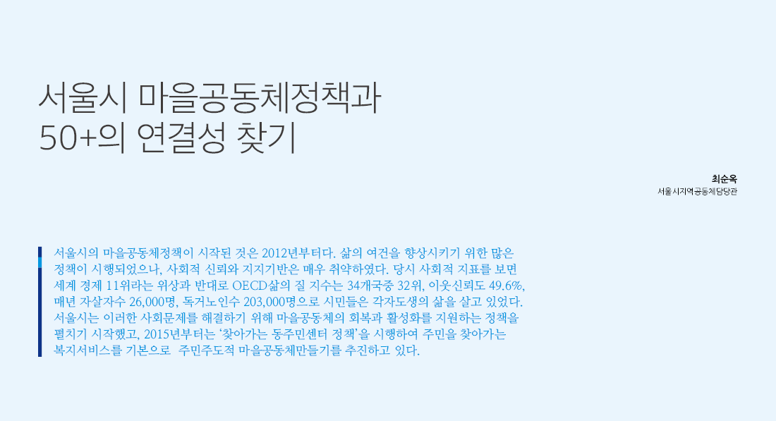서울시 마을공동체정책과 50+의 연결성 찾기