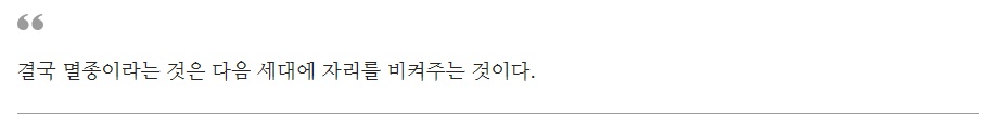 75억명 사람은 한 종이다. 대멸종 시기에 최고 포식자는 반드시 멸종했다. ‘인터스텔라’ 라는 영화에서 이런 대사가 나온다.