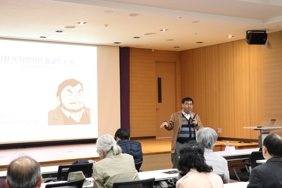 10월 30일 화요일, 불광동 서부캠퍼스에서는 ‘사회적 우정의 회복’이라는 테마를 가지고 ‘50+의 시간’이 진행되었다. 이 날은 ‘가장 비자연적인 동물, 인간’이라는 주제로 이정모 서울시립과학관 관장님의 강연이 열렸다. 푸근한 인상의 이웃집 아저씨 같은 이정모 관장님은 공룡을 무척 좋아하신다고 했는데 어찌나 잘 어울린다는 생각이 들던지…… ^^