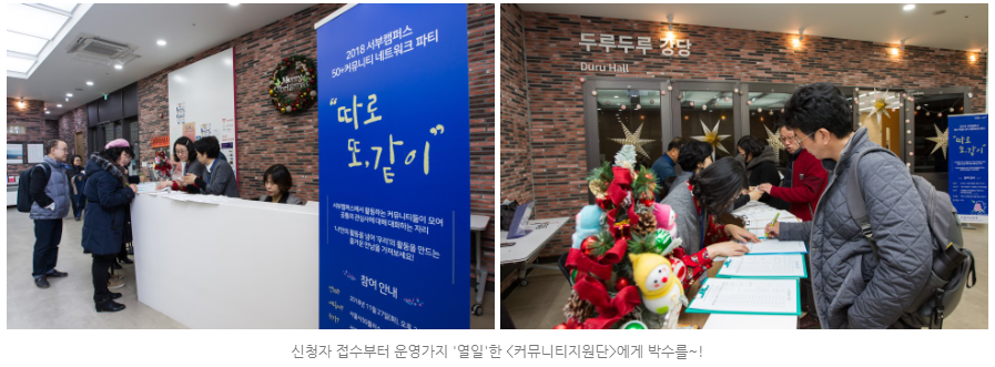 11월 27일(화요일) 서부캠퍼스 두루두루 강당에서는 50+커뮤니티 네트워크 파티 ‘따로 또 같이’가 열렸다.