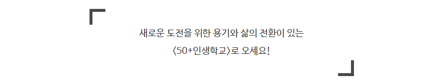 조금은 다른 삶에 용기를 더하는 <50+인생학교> 5기 모집 중! 삶의 전환을 꿈꾸는 50+분들을 기다리고 있습니다.