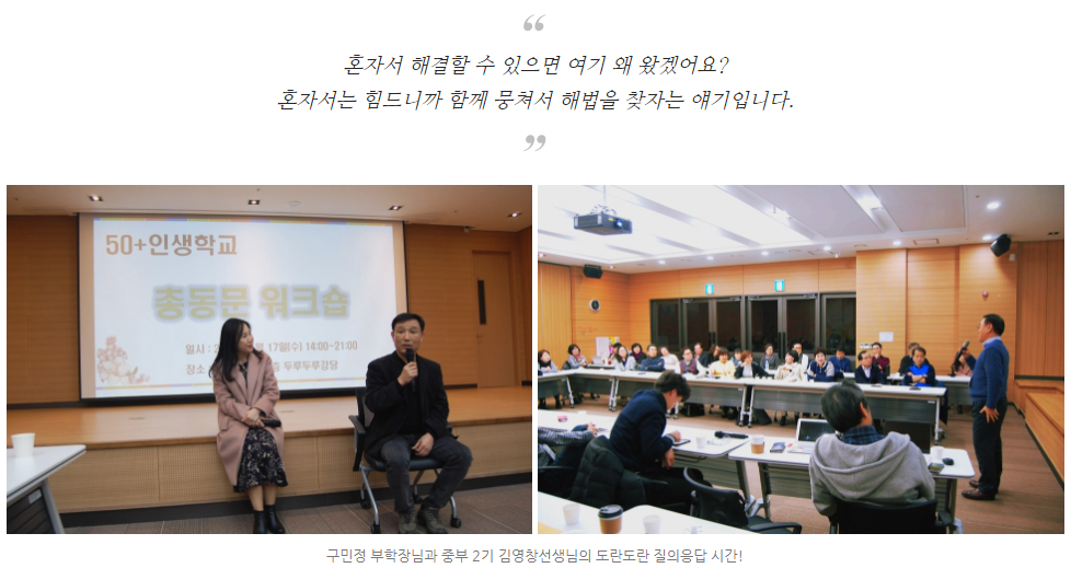"50+인생학교 동문들의 즐거운 작당, 총동문회 워크숍"