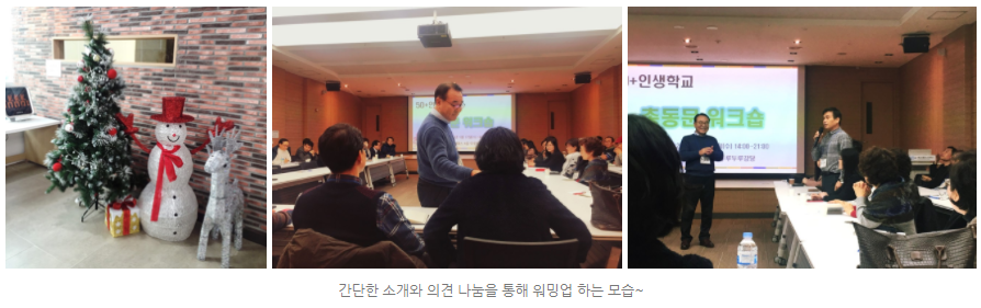 추운 날씨에도 불구하고, 인생학교에 대한 애정 하나로 함께 모여 더 나은 미래를 위해 고민하고 또 고민하는 모습이 참 아름답게 느껴졌어요.