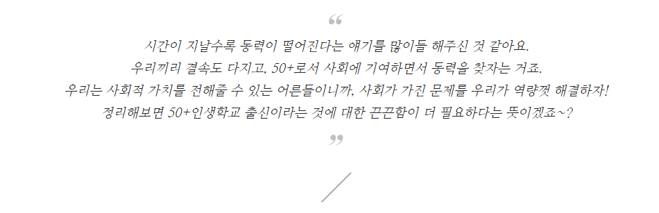50+캠퍼스 그리고 인생학교에 대한 애정 하나로 끈끈하게 뭉친 선생님들을 보며 부러운 마음까지 들었답니다!