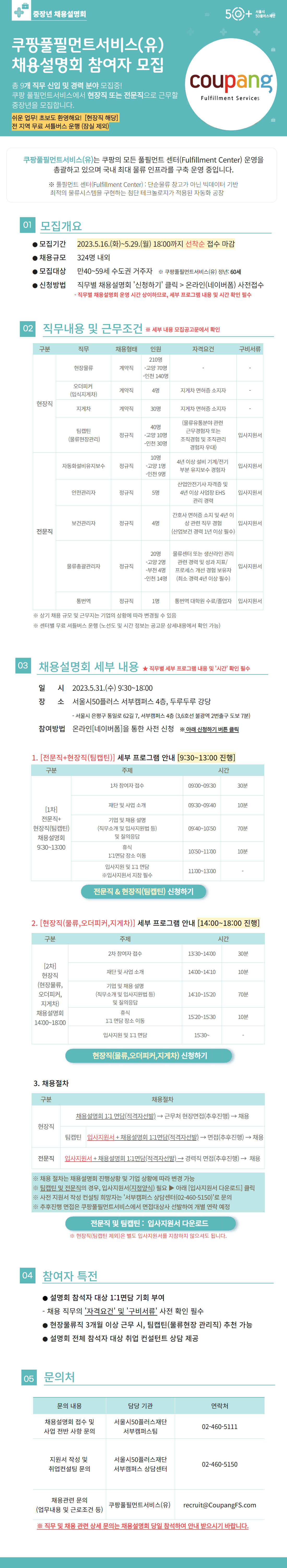 ※ 채용설명회 참여를 원하시는 분은 반드시 공고문의 '신청하기'를 각각 클릭하여 네이버폼 신청서를 작성해 주시기 바랍니다.[50플러스포털 접수 금지]
