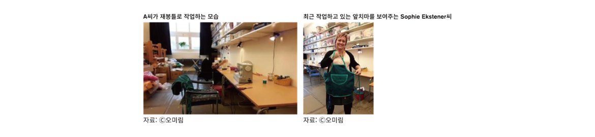 직원 Sophie Ekstener씨는 이곳에서 프로그램을 마친 후, 1년 전 고용되었다. 학교에서 아이들에게 공예를 가르치는 선생님이었는데, 극심한 스트레스를 받으며 일한 탓에 어느 순간 온몸이 기능을 정지했고, 회복이 쉽게 되지 않아 일을 그만두어야 했다.