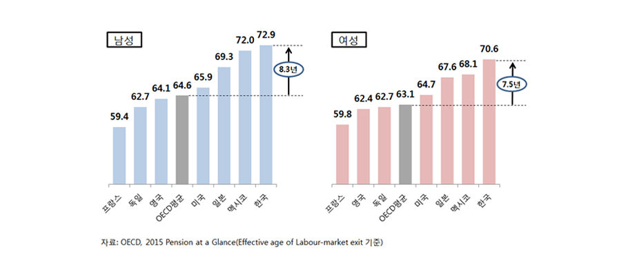 <그림 2> OECD 주요국의 실질은퇴연령 비교