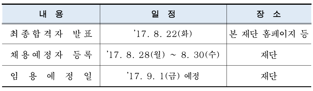 ※ 각 응시직급별 면접시험 시간은 합격자에 한하여 개별 통보(문자 안내)