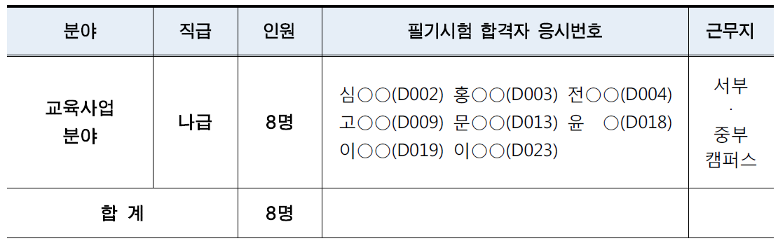 1. 필기시험 합격자(면접시험 대상자) : 20명