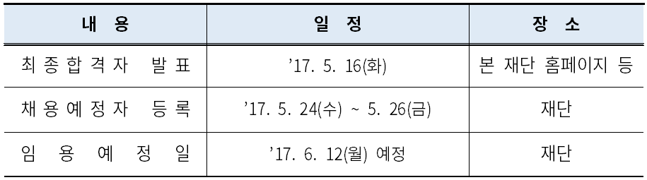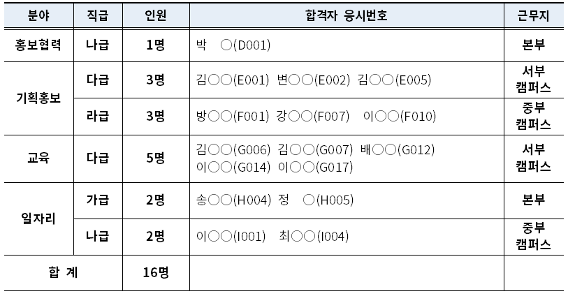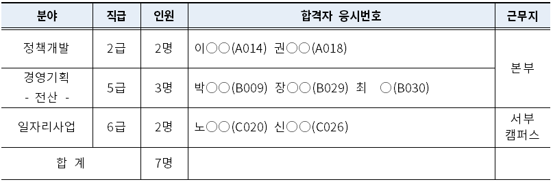 ※ 각 응시직급별 면접시험 시간은 합격자에 한하여 개별 통보(문자 안내)