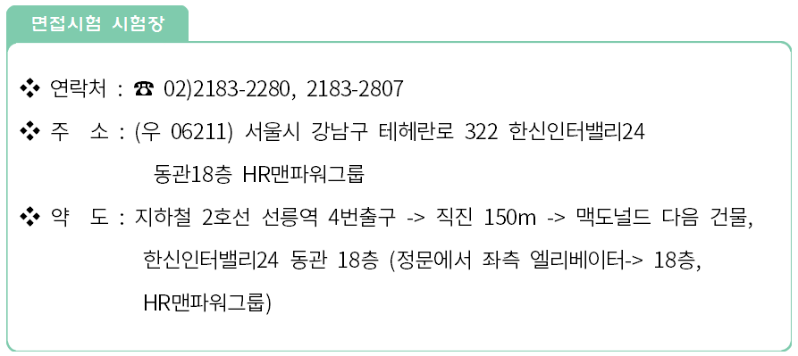 ○ 시험장소 : HR맨파워그룹(채용대행사) 면접심사 시험장