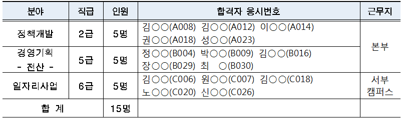 서류전형 합격자 및 필기시험 시행 계획 공고