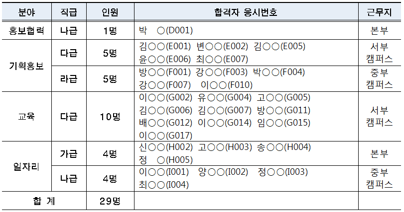 1. 서류전형 합격자(필기시험 대상자) : 44명