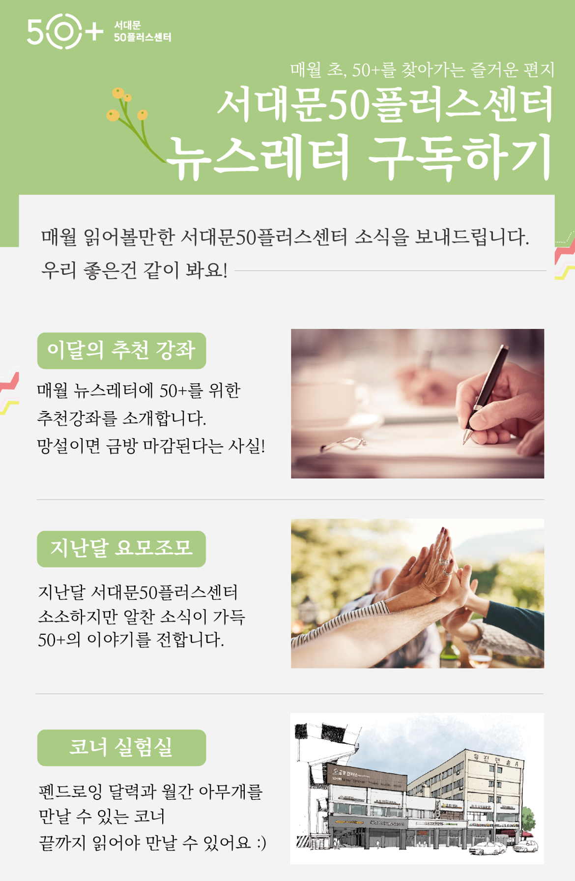 매월 초 50+를 찾아오는 즐거운 편지, 더 많은 분께 소식을 전하고 싶어요.