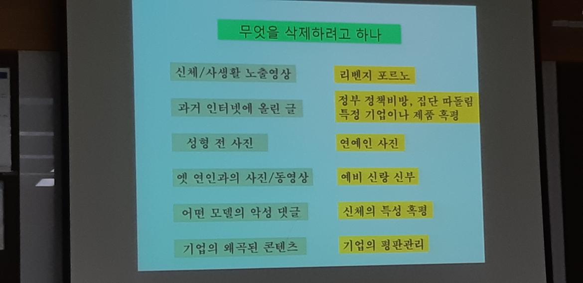 ▲ 주로 삭제를 원하는 자료들 (사진 제공=강의화면 직접 촬영)