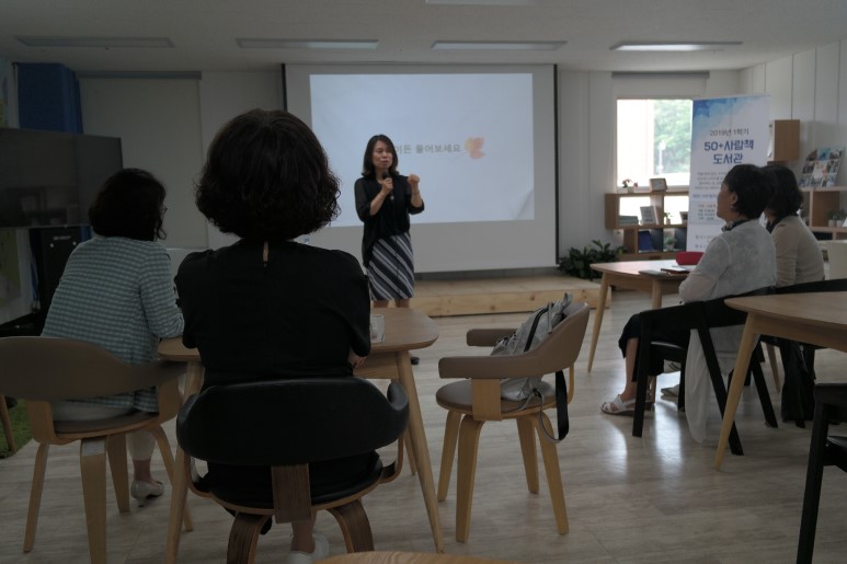 2019년 50플러스의 1학기 사람책 도서관은 다양한 삶의 이야기를 생생하게 들었습니다. 많은 참석자들이 서로 공감하며, 진솔하게 이야기를 나누는 만족스러운 시간이었던 것 같습니다. 오늘부로 "경력단절 여성 교육 강사에 도전하다"를 끝으로 사람책 도서관 시즌1의 모든 강의는 끝났습니다.
