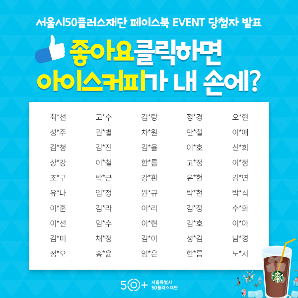 ※ 본 이벤트의 당첨자 정보취합은 서울시50플러스 공식 페이스북에서 진행됩니다!