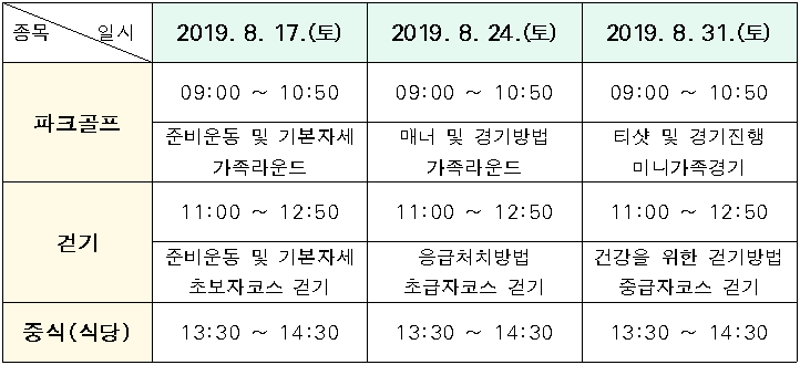 3. 일시 : 2019. 8. 17(토), 8.24(토), 8.31(토)