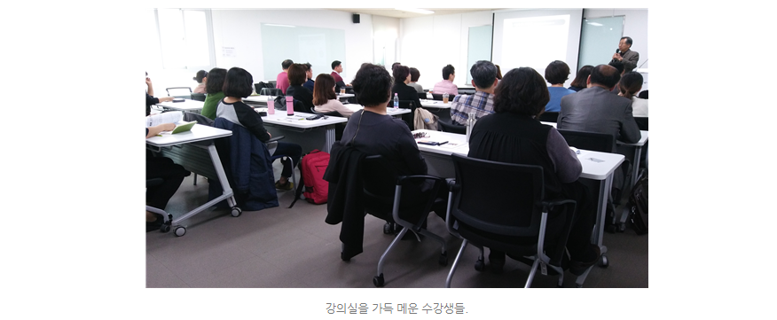 가벼운 옷차림의 수강생들로 강의실을 가득 메운 서부캠퍼스의 <원탁토론(오픈스페이스)진행자 양성과정>.