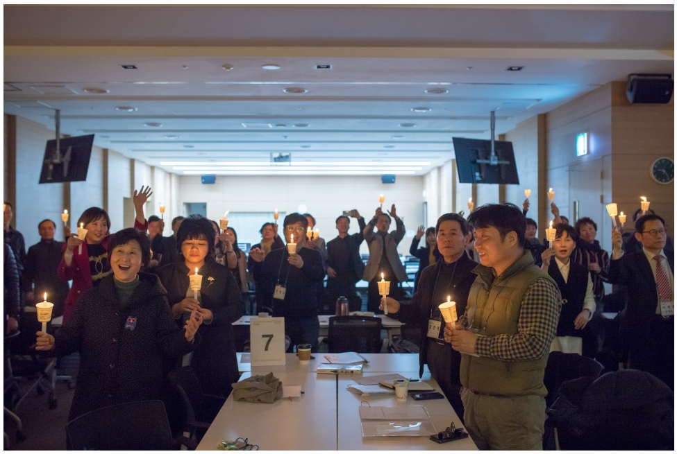 마지막으로 촛불을 들고 ‘사랑으로’를 합창하며 처음의 설레임이 기대감으로 일렁입니다.