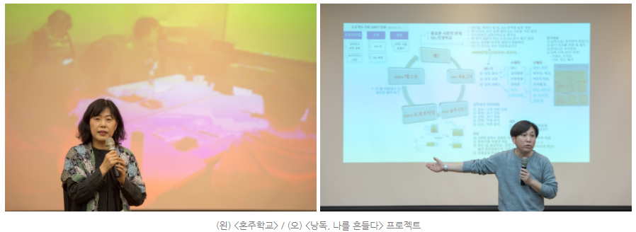 다음은 <낭독, 나를 흔들다>라는 이름의 프로젝트! 낭독 강의를 할 수 있는 강사 양성과 공연, 문화행사들을 통해 사회참여를 하고자 하는 팀이죠.