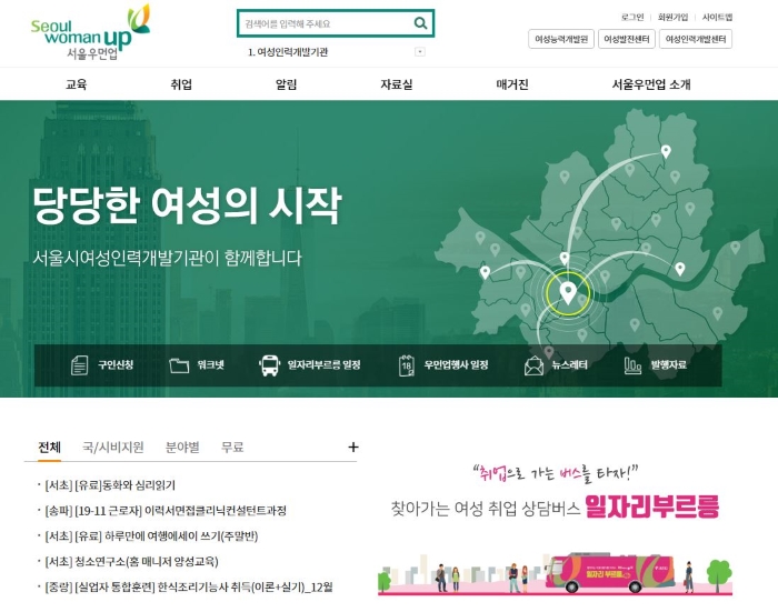 서울시는 여성의 경력 개발과 취업 지원 사업을 시행하는 23개소의 여성인력개발기관(여성발전센터 5개소+여성인력개발센터 18개소)을 운영하고 있습니다. 서울시 여성인력개발기관 통합 포털인 서울우먼업에서 각 기관의 교육·훈련 과정 및 각종 행사 소식, 여성 채용 정보를 만날 수 있습니다.