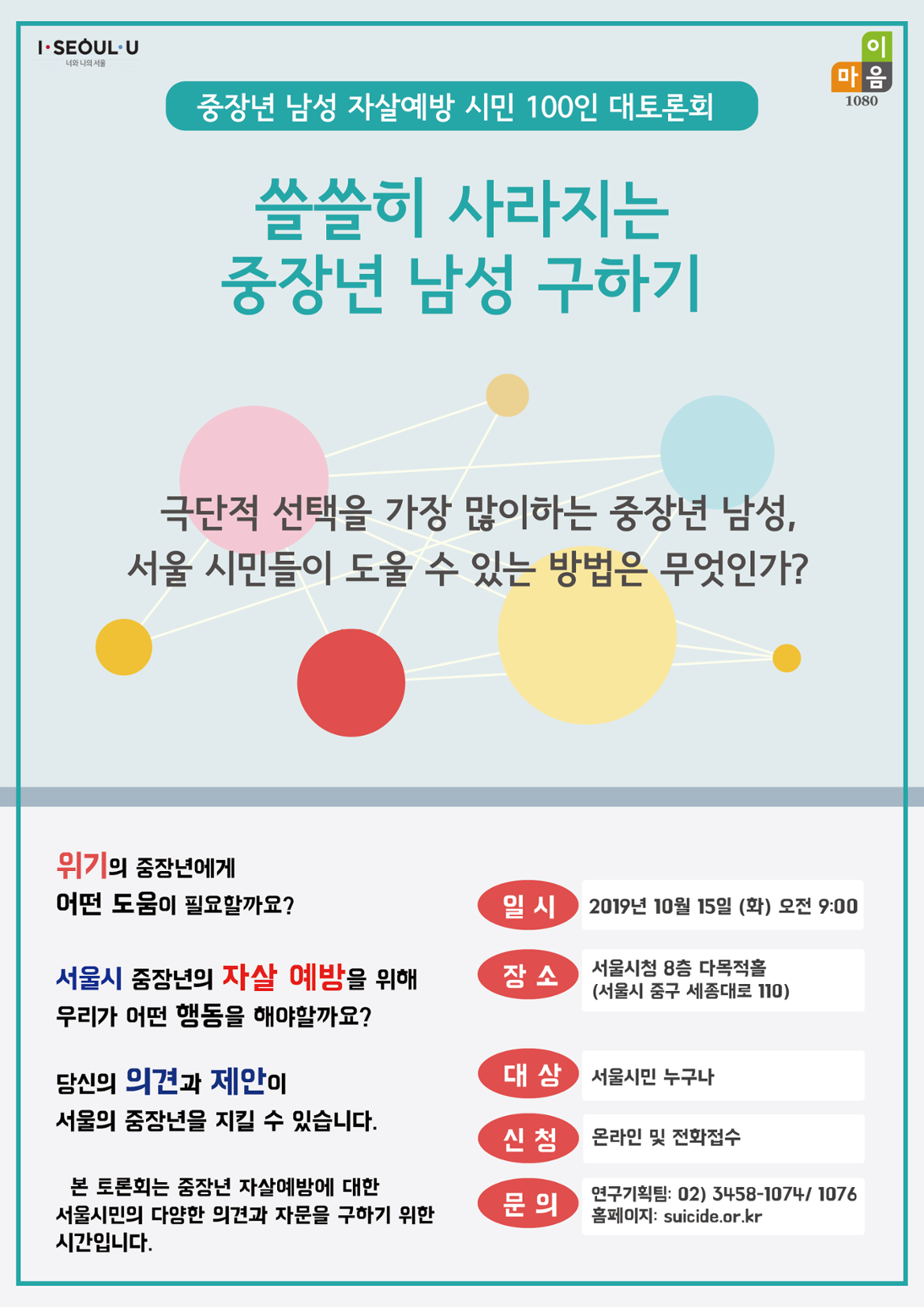서울시 자살예방을 위한 시민 토론회에 여러분을 초대합니다.