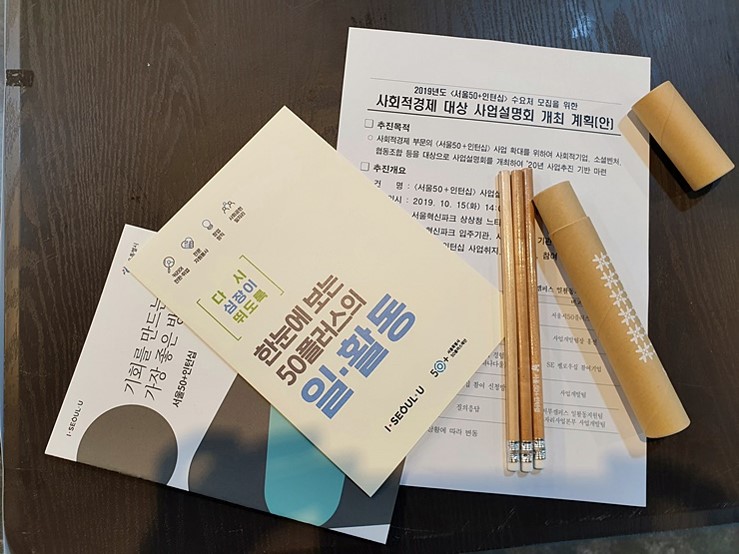 재단에서 추진하고 있는 <서울50+인턴십> 사업에 대한 설명과 역량 있는 50+세대들을 고용할 수 있는 사회적 기업