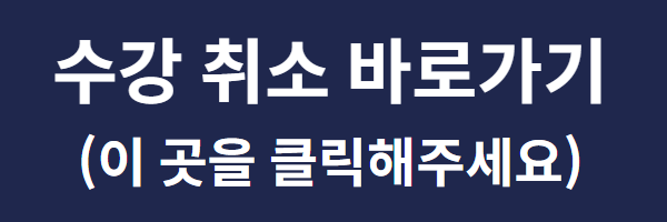 ▶ 수강과목 확인 후 취소 버튼▶ 취소사유 및 환불 계좌 작성 후 확인 버튼