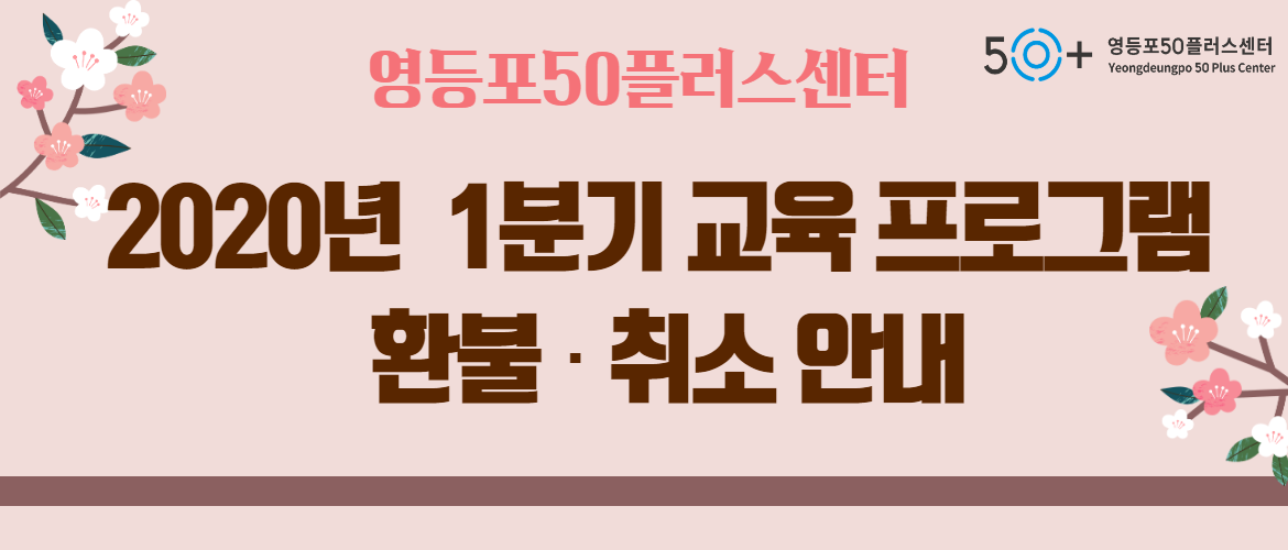 ■ 교육 취소 및 환불신청방법: 영등포50플러스센터▶ 로그인▶ 마이페이지▶ 수강 신청내역▶ 내 강좌