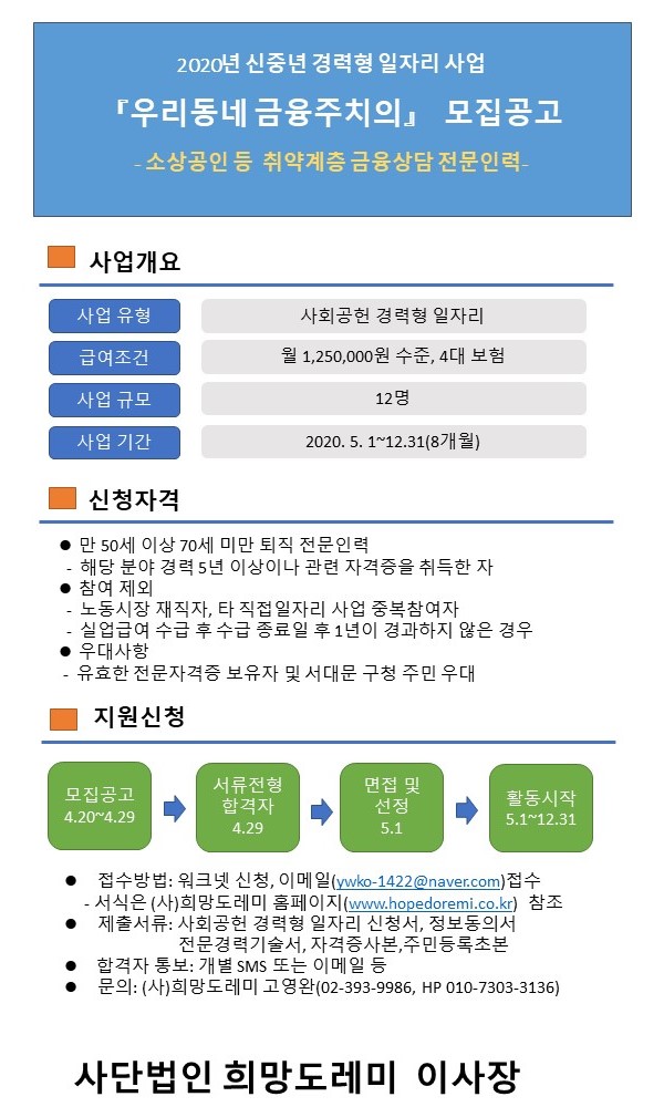 [사단법인 희망도레미] 『우리동네 금융주치의』 모집(~4.29)