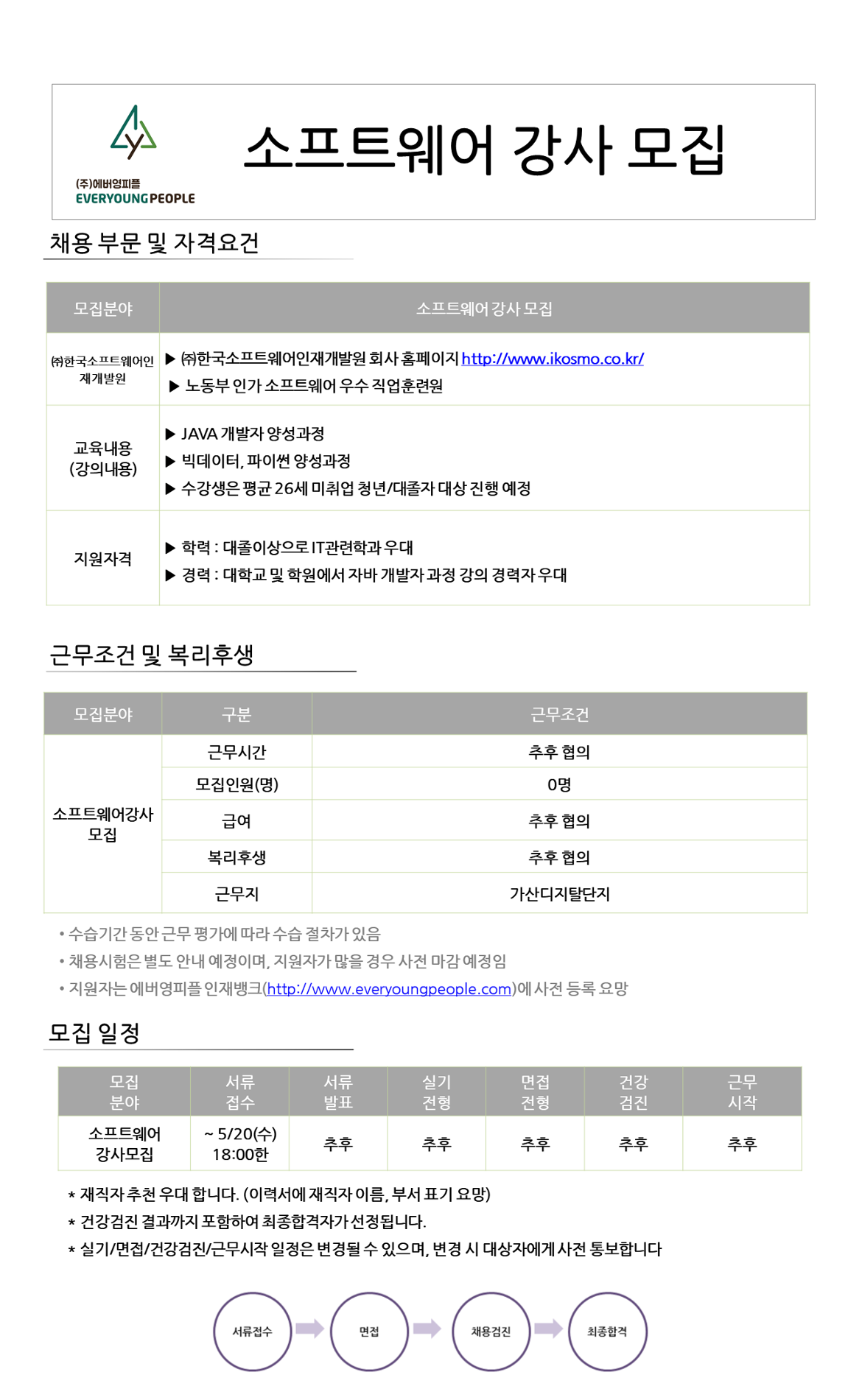 [(주)한국소프트웨어인재개발원] 소프트웨어 강사 모집(~5/20)
