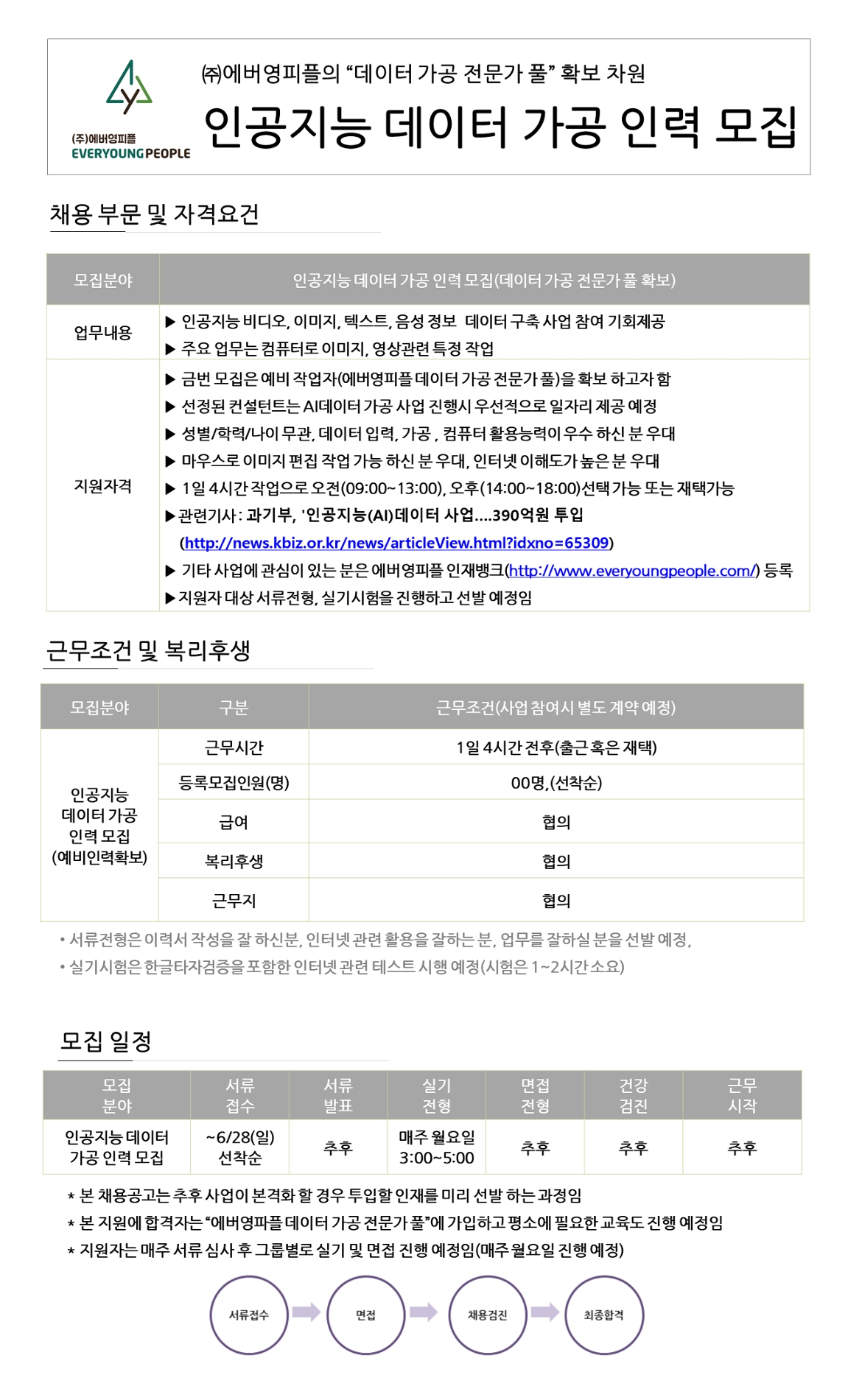 [에버영피플] 인공지능 데이터 가공 인력 모집(~6/28)