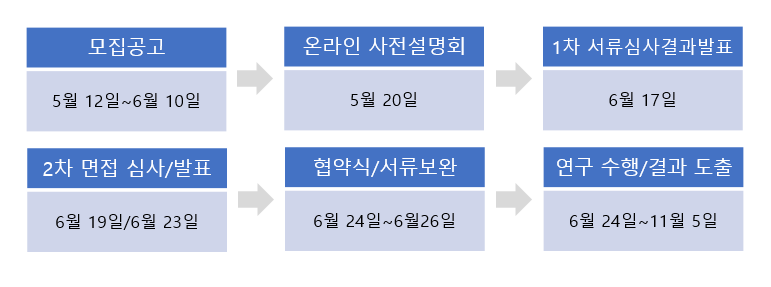 총 19팀이 서류 심사를 통과하고 2차 면접심사를 거쳐 이슈페이퍼 유형 5팀, 연구리포트 유형 14팀까지 총 19팀이 선정되었다.