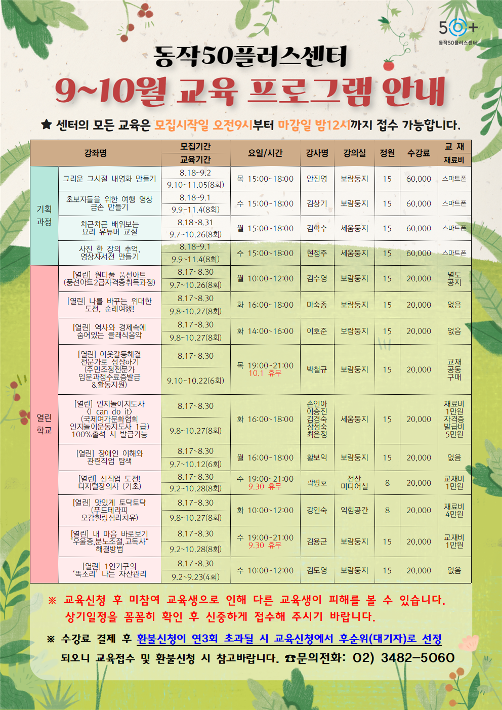 ##동작50플러스센터#4월#5월#6월#프로그램#안내