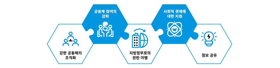 2010년 영국 보수당은 14년 만에 집권하면서 ‘빅 소사이어티(Big Society)’라는 정책 슬로건을 내세웠다. 이는 중앙의 복지 예산 투입 대신 지역민 주도로 지역 문제를 해결하고 정부의 재정부담을 최소화하여 증세 없는 복지를 실현한다는 내용이다. 상세 내용은 아래와 같다.