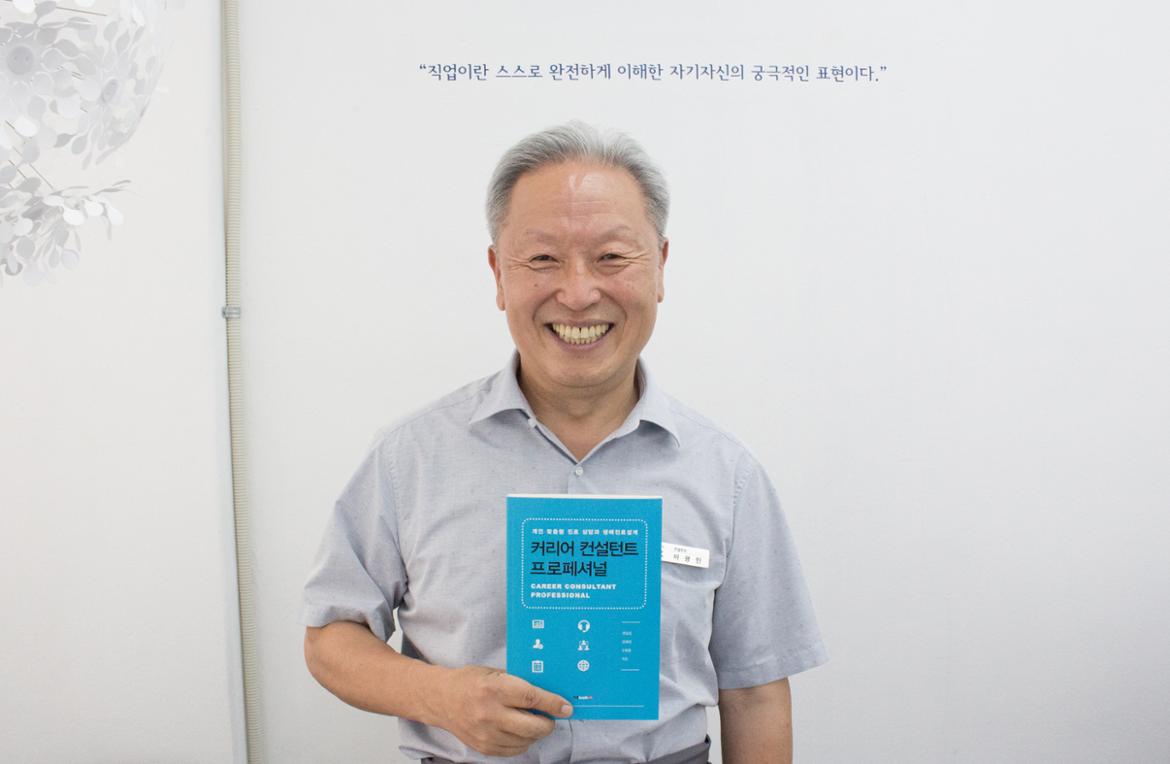 그가 들고 있는 책은 권일진 이사장과 조합원들이 함께 쓴 책이다. 심온사회적협동조합은 직업 상담의 패러다임을 바꾸고자 한다.